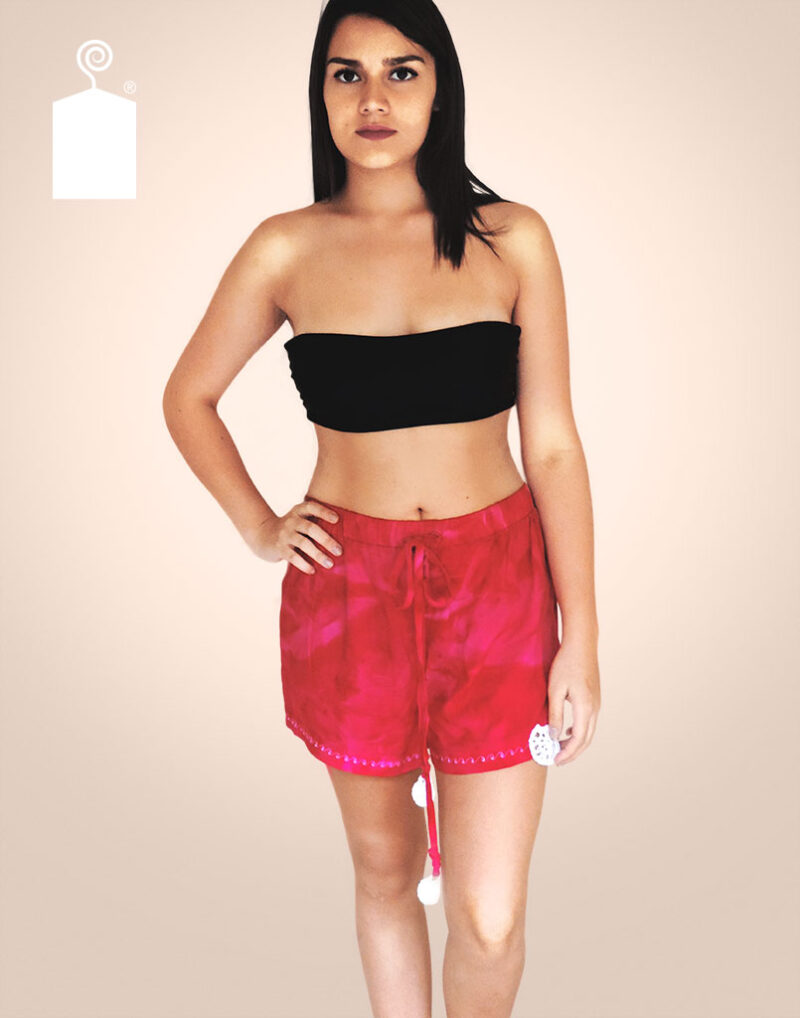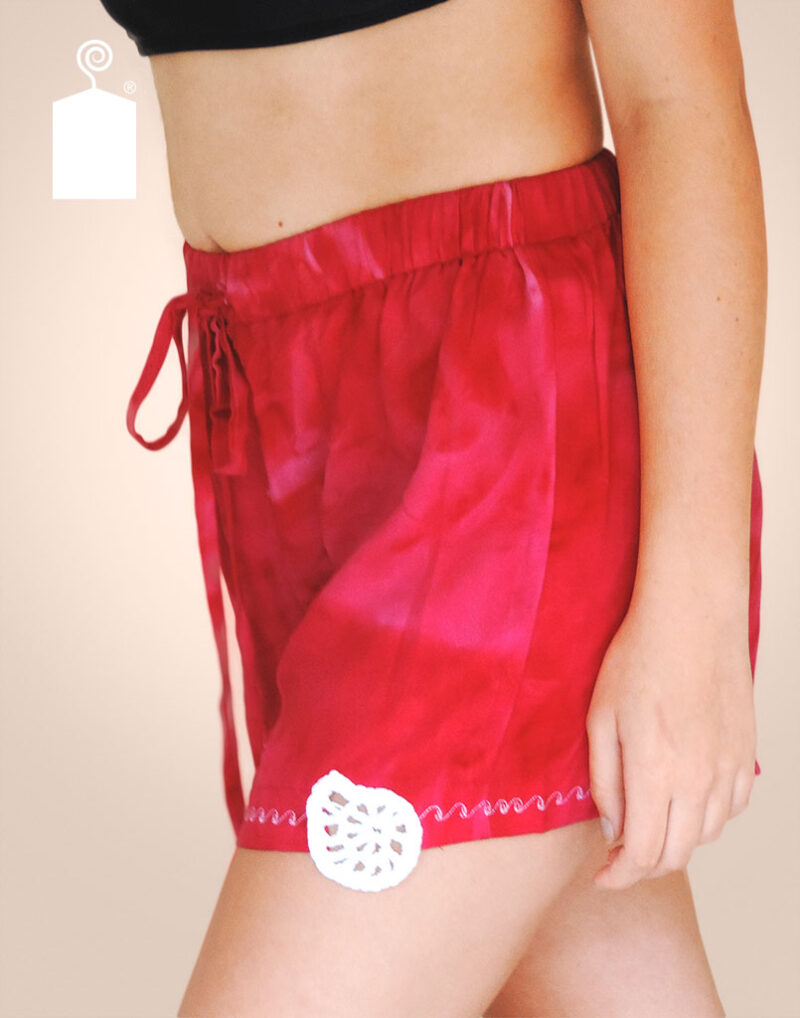Pantalón estampado, con elástico y cordón de ajuste en la cintura con aplicaciones en ganchillo.