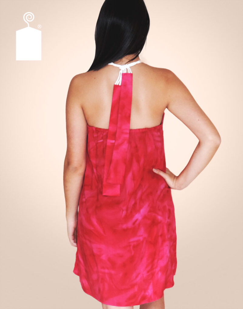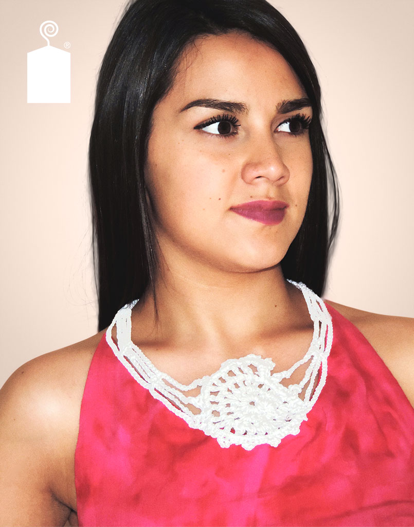 Vestido salida de playa con espiral blanca central elaborada a mano en técnica ganchillo.